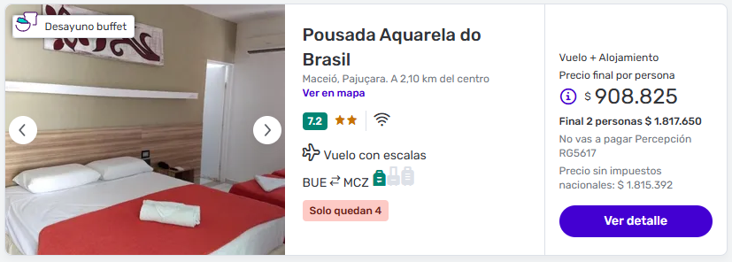 Hay muy buenos Paquetes a Maceió con Carry On y buenos hospedajes a partir de U$D 641 💥 desde Aeroparque. Tarifas finales, por persona, en base doble.