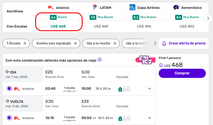 Bajaron las tarifas de vuelos a San José, Costa Rica desde Buenos Aires a partir de U$D 468 finales, ida y vuelta. También, les dejamos opciones que se pueden comprar en pesos argentinos.
