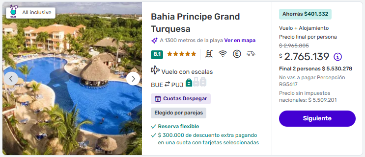 Les dejo una lista con otras alternativas. Recuerden que los precios varían dependiendo de la cantidad de noches, categoría del alojamiento, régimen de comidas, aerolínea, equipaje y/o estacionalidad de fecha de viaje: