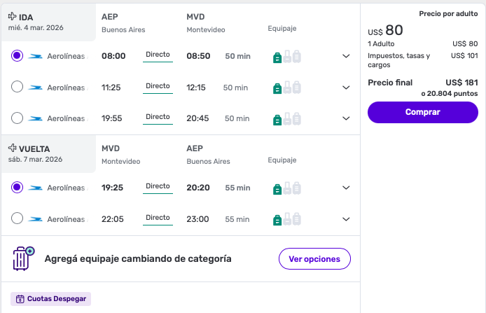 Les compartimos excelentes tarifas de vuelos a Montevideo, Uruguay desde desde Bs. As. a partir de U$D 180 finales, ida y vuelta. Hay pocas fechas a U$D 177, aprovechen!