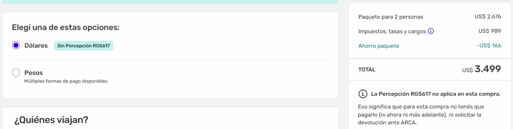 NOTA: mostramos la opción en dólares porque resulta ser la más económica y conveniente. Sin embargo, quienes quieran pagar en pesos, pueden seleccionar esta moneda al final del proceso de compra, previo a realizar el pago.